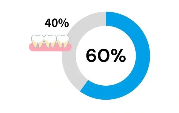 つまり毎日歯ブラシでしっかり磨いているつもりでも40%は磨き残しとして蓄積しているのです。