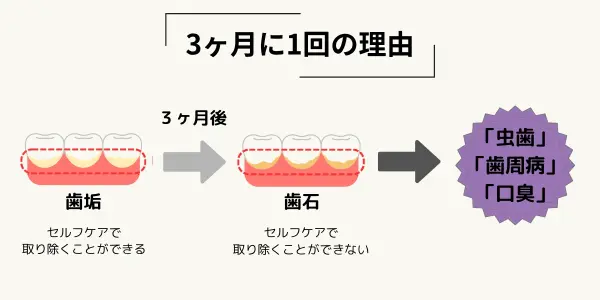 それは「歯垢(プラーク)が歯石に変わるのが約3ヶ月後」だからです。
