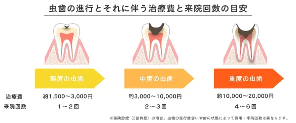 虫歯は進行するほど通院回数は増え、それに伴い治療費の負担も大きくなります。