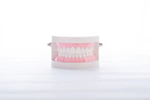 咬合器とは顎の骨のような形をしており、実際に噛んだ状態を再現するために使用されます。