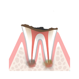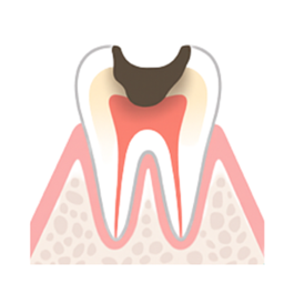 さらに進行し、神経が壊死した虫歯では、まず歯を残すことができるかどうかの慎重な見極めが必要です。